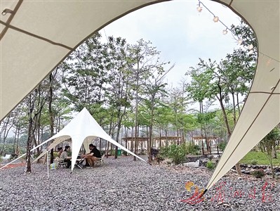 依托蒜溪景观和田园风光,江口镇在东大村打造以生态、自然、年轻、时尚为基调的“溪栖里”露营地。营地设有休闲区、娱乐区、运动区、观光区、采摘区等,为游客提供有趣的探索体验和全方位服务。“慢”生活休闲模式将生态优势转化为老百姓手中实实在在的财富,激发了乡村新活力,也为乡村提供了可持续发展的动力。