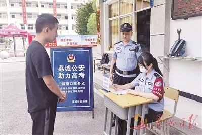 今年高考期间,全市公安机关在各考点就地设立公安户籍服务点,并放置醒目标志,安排专门警力做好服务点的服务保障工作,为丢失或忘记携带身份证的考生出具临时身份证明,做到随来随办,保障考生顺利完成考试。此前,全市公安机关还为高考学生开启身份证办理“绿色通道”,推行延时、预约服务,简化办事流程,提高办证速度,急事优办,特事特办,做到当天受理、当天审核签发,一天内完成制证。