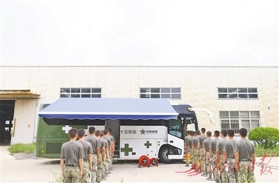 此次巡诊中,九五医院将移动体检车开进基层(如图),车上配备有DR、彩超、抽血以及听力检查等设备,在车内就能完成血常规、彩超、胸片等多项检查,让官兵不出营区就能享受到优质、高效、便捷的医疗服务。