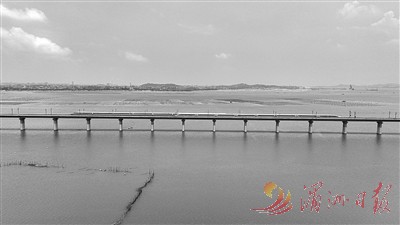 6月28日,在湄洲湾跨海大桥,试验列车交会运行。 新华社 发