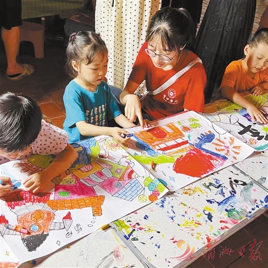 本报讯 “姐姐,再给我一支红色蜡笔,我马上就要画完啦……”7月1日,莆田学院外国语学院“拨浪鼓”实践队来到兴化府历史文化街区,为孩子们带来七彩课堂,通过绘画,普及莆仙传统文化。