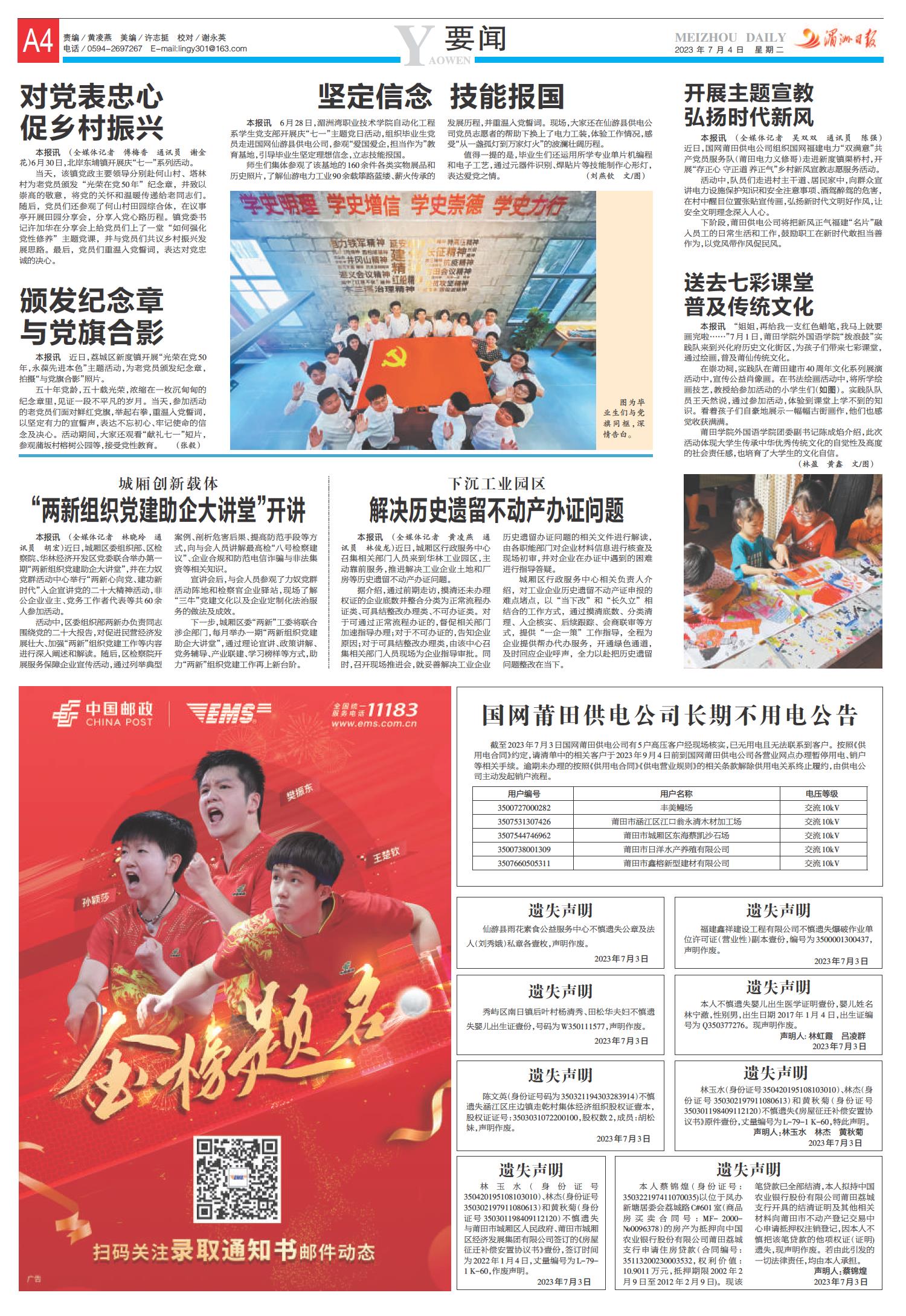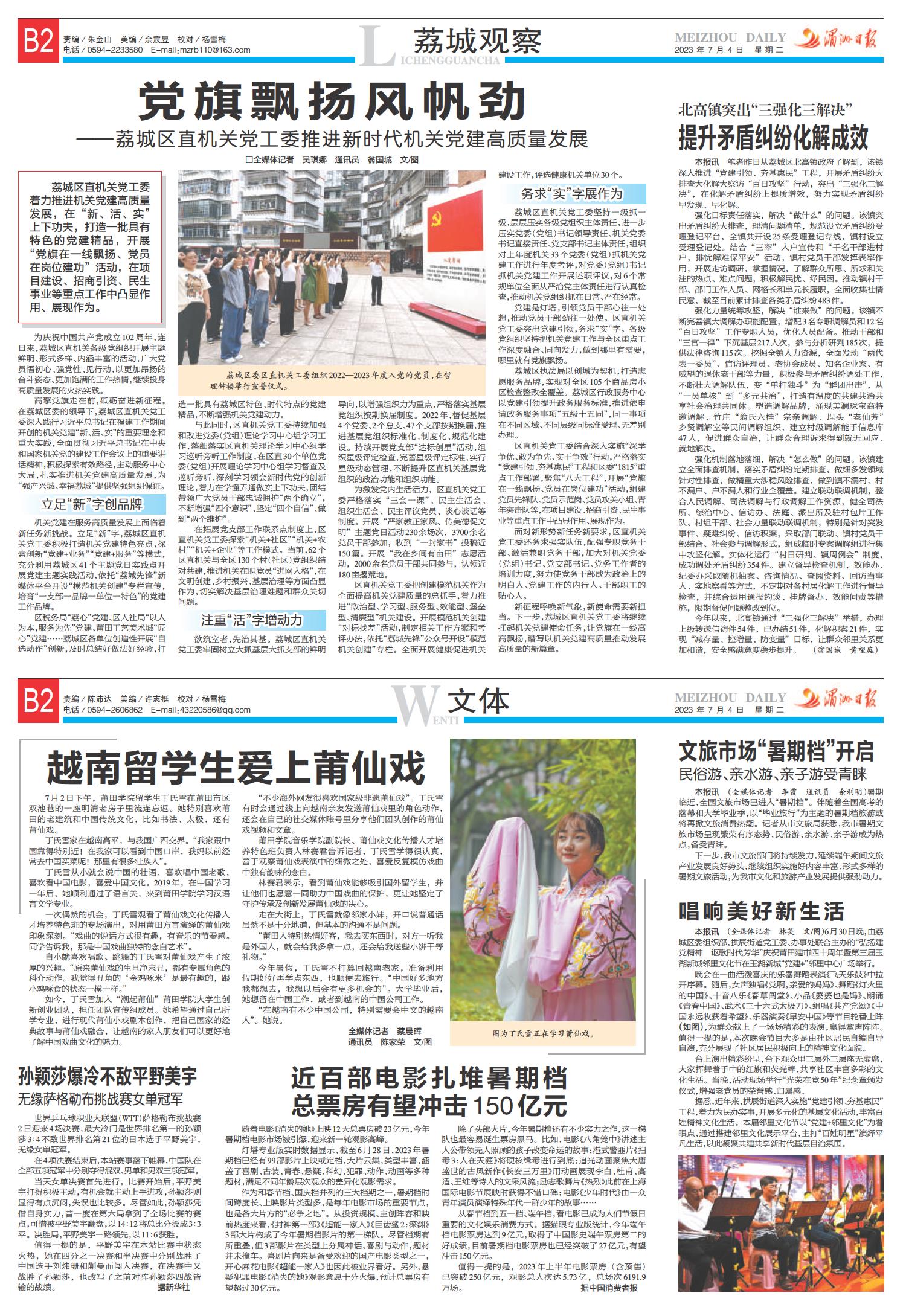A1 要闻 A2 要闻 A3 国内国际 A4 要闻 B1 专版 B2 荔城观察 文体 B3 三湾潮 B4 金融周刊
