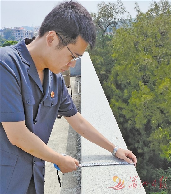 图为承办法官前往案涉房屋进行现场查勘,对存在争议的尺寸进行现场丈量。