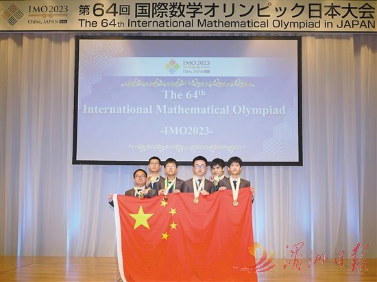 在12日于日本千叶县结束的第64届国际数学奥林匹克竞赛中,来自中国的6名选手全员获得金牌,中国队以240分的总分实现团体总分五连冠。新华社记者 张笑宇 摄