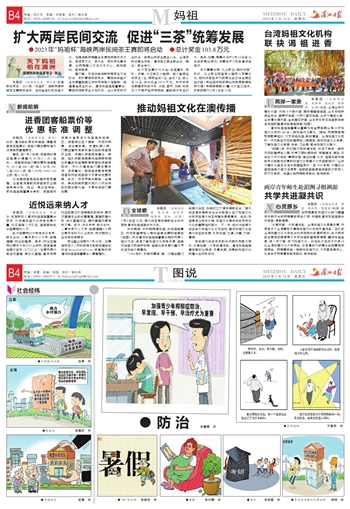 湄洲妈祖祖庙董事会董事长林金赞陪同台湾10家妈祖文化机构280余人向妈祖行三献礼。随后,两岸同胞相聚思懿亭座谈,大家共话妈祖,畅叙情谊。台湾妈祖文化机构一行还前往天妃故里遗址公园等地,探究妈祖文化渊源,了解妈祖文化起源、传承、习俗等,感受妈祖文化魅力。