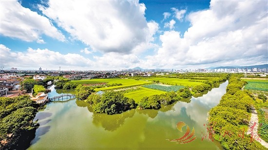 涵江区白塘镇双福村自然景观优美,汇聚了田园、河湖、荔林、古厝、人文等多种资源,被列为中国美丽休闲乡村。近年来,该村引入观光农业等新业态,推广特色农业旅游,吸引不少游客前来休闲度假。图为近日航拍下的双福村。全媒体记者 陈斌 摄