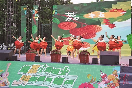 此次活动以“荔枝元素”为切入点,融合“荔枝文化+美食节+音乐节”,推出了文艺汇演、古厝民俗、“咏颂梧塘”诗词展、西庄美食节、荔枝集市等活动,带着大家啖荔枝、游古厝、品美食,共襄荔枝文化盛宴。开幕式上,歌曲《凤鸣梧桐》、萌娃表演《荔枝谣》等节目接连上演(如图),吸引众多市民驻足观看。随后,还举行了“龙峰之恋”全新品牌升级发布仪式、校地合作基地授牌仪式。