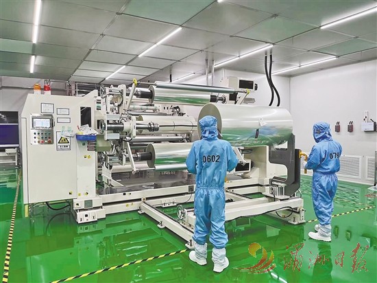 三利谱光电科技有限公司内,先进生产线加快生产。