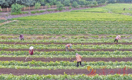 高温天,农忙热。图为7月17日,涵江区江口镇东大村村民在田间劳作。