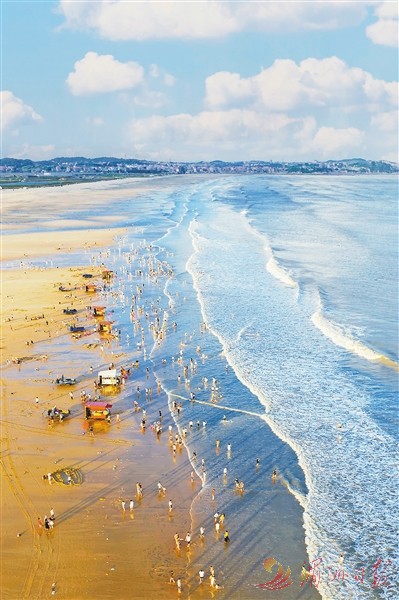 平海嵌头黄金沙滩沙细滩平岸阔、海水湛蓝清澈,有“莆田天涯海角”的美称,夏天前来观光的游客络绎不绝,踏浪、戏水、游泳、追逐落日,各寻其趣,各得其乐。