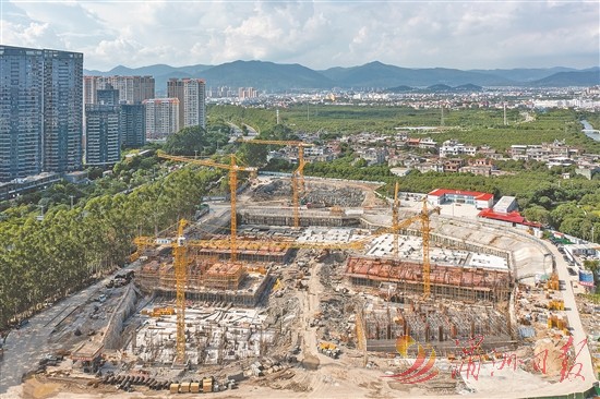 炎炎夏日,莆涵大道与荔园路交叉处的白塘路安置区及配套道路项目建设战犹酣。这个紧邻城市绿心的民生项目,将建筑9幢715套安置房,力争今年底主体结构封顶。 全媒体记者 陈斌 摄