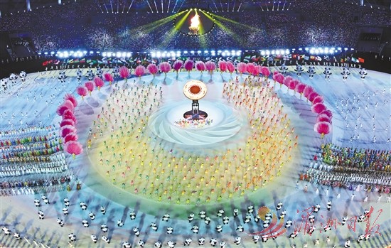 “把世界照亮,听见生命的歌唱”“把未来照亮,眺望美丽的远方”……青年大学生们在圣火下欢聚,共同演唱开幕式主题曲《成就梦想》,整座体育场化为欢乐的海洋。