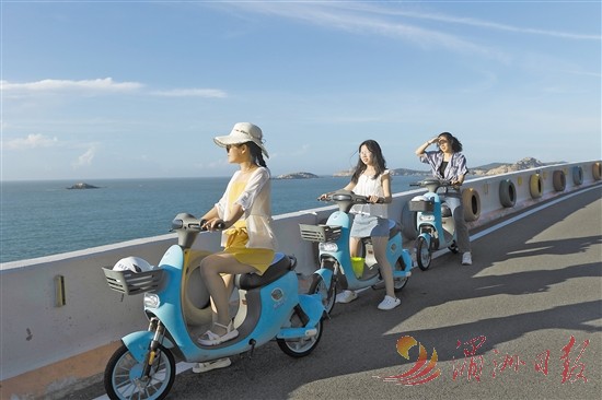 在湄洲岛骑上共享电单车,沿着彩虹道一路游玩,看日出,赏风景,迎着海风哼着歌,追逐一场海的浪漫,连空气都带着自由的味道。