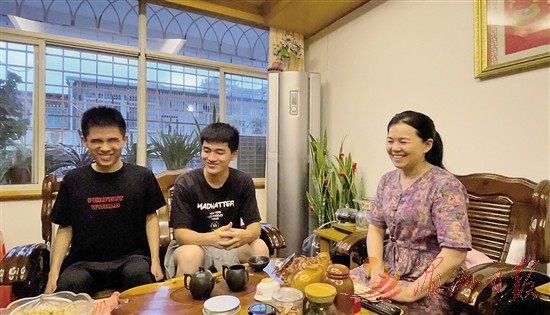 黄镇宇(左一)与家人畅聊即将开启的大学生活。 全媒体记者 刘永辉 摄