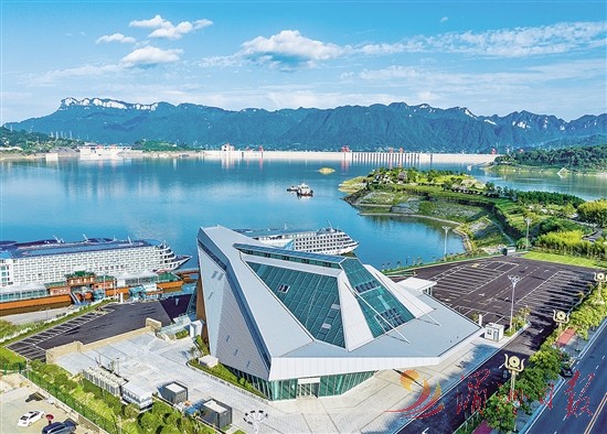 8月13日在三峡大坝上游湖北省宜昌市秭归县拍摄的新建旅游港换乘中心。近日,三峡大坝上游的湖北省宜昌市秭归县旅游港换乘中心建设即将投入运行,标志着具备年游客通过能力240万人次的长江三峡宜昌至重庆的始发港和终点港将全面建成。