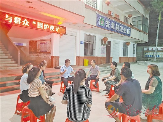 平海镇开展“驻村联户”活动,利用夜间进行访谈,协调解决问题。