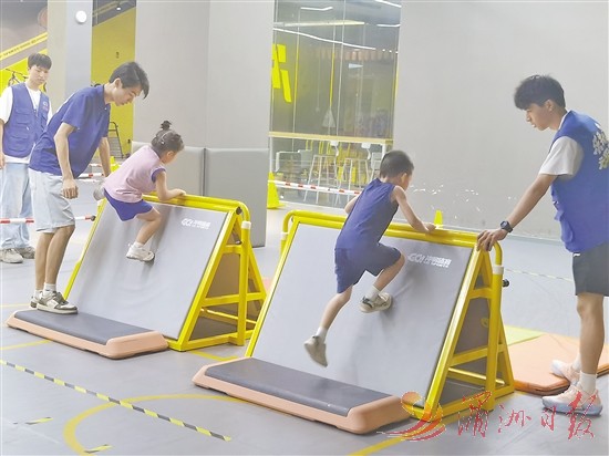 今年8月7日至13日是我国首个“体育宣传周”。我市一家儿童运动中心举办一场儿童趣味体适能挑战赛,帮助孩子们在体育锻炼中享受乐趣、增强体质。图为挑战赛现场。 全媒体记者 林英 摄