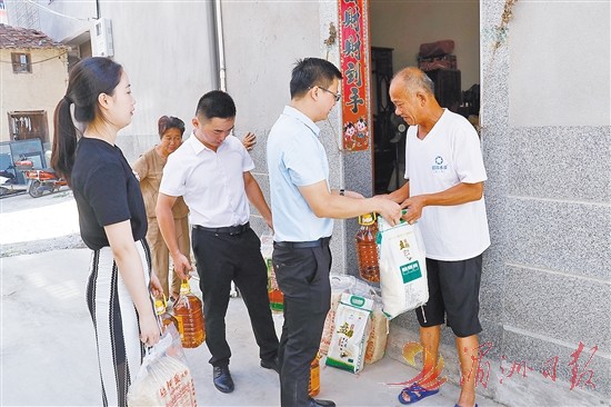 日前,荔城区退役军人事务局联合福建谨一律师事务所志愿者,开展关爱困难退役军人活动,走访慰问黄石镇13户困难退役军人家庭。图为慰问人员为黄石镇徐厝村困难退役军人徐金和送上粮油等。 陈文华 摄