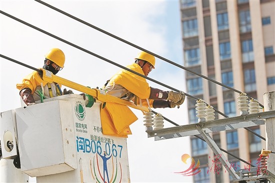 当天上午9时许,施工现场热火朝天。莆田供电公司组织20多名施工人员联合行动。2名带电工作人员乘坐绝缘斗臂车升至高空,对线路进行带电解除(如图)。一组施工人员上杆更换开关,另一施工人员则负责电缆搭接工作。16时许,在全体施工人员的共同努力下,圆满完成施工任务,赶在开学前完成送电,为广大师生营造一个安全、和谐的校园用电环境。