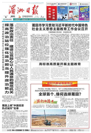 昨日召开的莆田市学习贯彻习近平新时代中国特色社会主义思想主题教育工作会议,深入学习贯彻习近平总书记关于主题教育重要讲话和重要指示批示精神,贯彻落实中央和全省学习贯彻习近平新时代中国特色社会主义思想主题教育第一批总结暨第二批部署会议精神,对我市主题教育进行部署。
