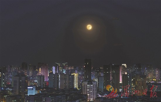 昨日是中秋节,也是中秋国庆假期首日。今年中秋夜的月亮是本年度第三大满月,也叫“超级月亮”。图为昨晚我市上空拍摄到的一轮圆月。 陈奇 摄