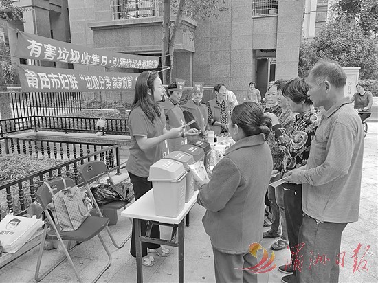 本报讯 (全媒体记者 林英 文/图)为倡导健康生活方式,深化垃圾分类理念,10月11日,市环卫处联合山水天地(厦门)环保科技有限公司在荔城区正荣润城、辰门兜小区等地,开展“有害垃圾收集日”宣传活动(如图)。