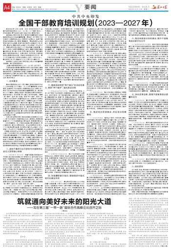 共建“一带一路”追求的是发展、崇尚的是共赢、传递的是希望,开拓的是和平之路、繁荣之路、开放之路、创新之路、文明之路。实践充分证明,共建“一带一路”顺潮流、惠民生、得民心、利天下,具有强劲的韧性、旺盛的生命力和广阔的发展前景,这正是其扎实推进、行稳致远的成功密码。
