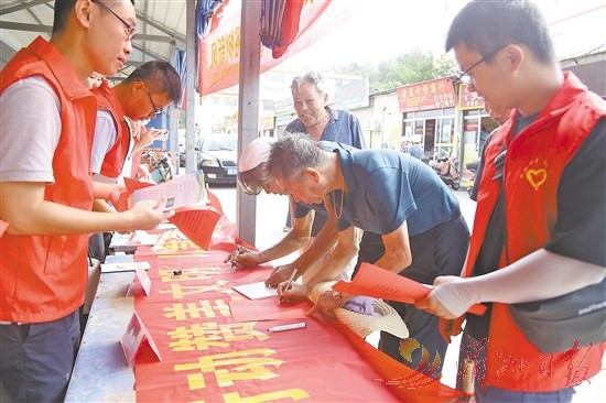从国庆到春节,莆田民间婚庆喜事多。活动现场还组织群众签署婚事新办等移风易俗承诺书及横幅,群众纷纷自觉签名(如图)。大家表示,移风易俗,功在当代,利在千秋,不仅减轻人情负担,更有益于营造和谐、稳定的社会环境。 (陈琛 余凌娟 文/图)
