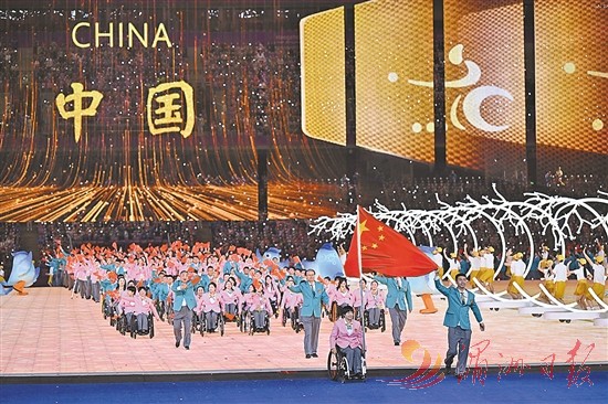 中国代表团在开幕式上入场。 新华社 发