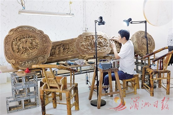 昨日,在中国·莆田工艺美术城的莆田藏云堂木雕传习所里,记者看到林建军正对如意进行修光,雕刀在指尖挥动,精雕细琢刻画细节。他说,细节雕琢后,经过磨光和上蜡就完工了。