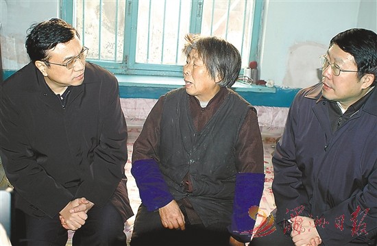 图⑤:2004年12月26日,李克强同志到辽宁省抚顺市莫地沟棚户区居民王淑贞家中走访调研。 新华社 发