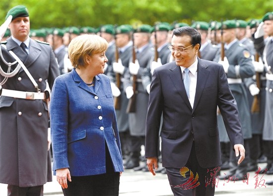 图⑥:2013年5月26日,李克强同志在柏林出席德国总理默克尔举行的欢迎仪式。 新华社记者 马占成 摄