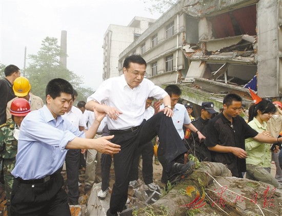 图⑧:2008年5月19日,李克强同志在四川地震灾区察看灾情。 新华社记者 兰红光 摄