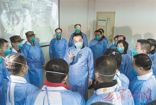图⑫:2020年1月27日,李克强同志赴湖北省武汉市考察指导疫情防控工作,代表党中央、国务院慰问疫情防控一线的医务人员。 新华社记者 李涛 摄