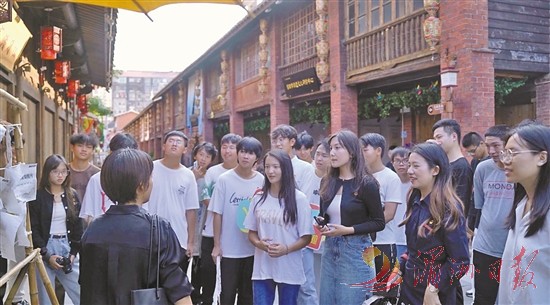 图为湄职院少数民族大学生走进兴化府历史文化街区体验莆田非遗文化。