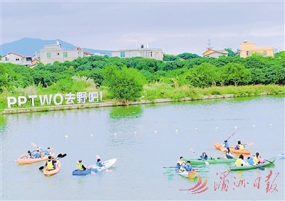秋高气爽,我市乡村旅游热起来。图为在西天尾北大村,游客在体验皮划艇。