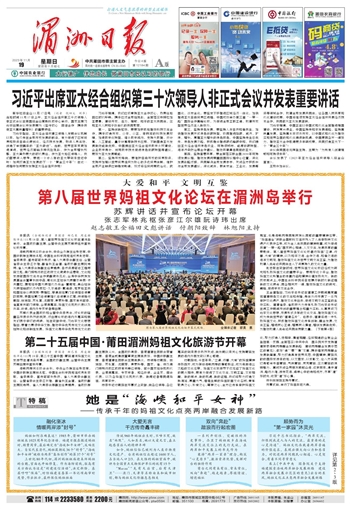 本报讯 (全媒体记者 黄国清 郑已东 周凌瀚 陈沛达)11月18日,第八届世界妈祖文化论坛在湄洲岛举行。全国政协副主席、台盟中央主席苏辉讲话并宣布论坛开幕。