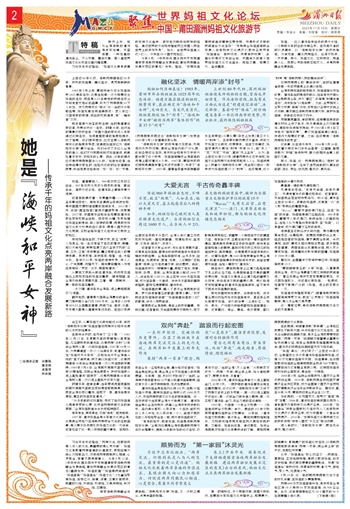 妈祖如何准确表述?1985年,莆田市举办妈祖诞辰1025周年纪念活动。福建日报在报道妈祖时,颇费周章,最后确定为“海峡和平女神”,反响巨大。自宋代至清代,妈祖获朝廷36个“封号”,“海峡和平女神”被称为两岸“集体创作”的第37个“封号”