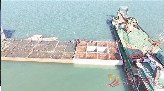本报讯(全媒体记者 黄凌燕 通讯员 刘子祺 陆仁杰 文/图)11月19日,湄洲湾港东吴港区罗屿作业区11号、12号泊位工程首个沉箱顺利入海,精准安放。该项目计划安装29个沉箱,型号包括CX-1、CX-2两种,重量分别为2848吨、2793吨。此次出运的是CX-1型沉箱。