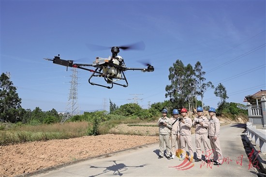 输电运检人员操作无人机飞到指定位置。 陈娜丽 摄