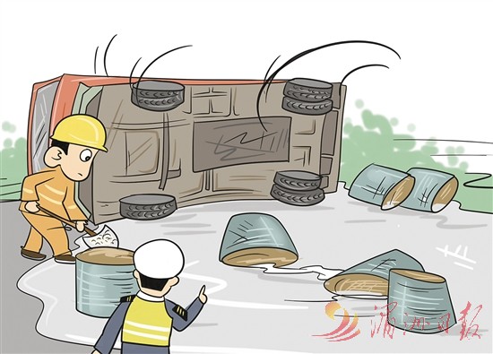 当天8时15分,莆田高速执法支队黄石中队接到警情后,赶到事故现场,只见现场一辆轻型仓栅式货车侧翻在地,几十个大油桶滚落在主车道上,油桶破损严重,乳白色胶水洒满路面,覆盖面积约300多平方米。事故现场只有应急车道和部分第四车道可供通行,过往车辆或停车观看或鸣笛避让,加上胶水还在泄漏,蔓延面积不断扩大,情况非常危险。