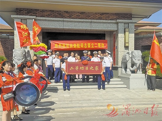 最近,秀屿区组建“送奖报喜团”来到东峤镇珠江村,将二等功喜报、二等功臣之家牌匾送到消防员林剑航家中,让家属共享这份荣耀。全媒体记者 林英 摄