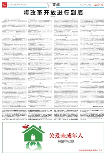 风雨沧桑,大道无垠。实践昭示我们,改革开放是当代中国发展进步的必由之路,是实现中国梦的必由之路。在强国建设、民族复兴的新征程上,将改革开放进行到底——这是时代的呼唤,是人民的心声,是党中央坚定不移的战略布局,是新时代中国共产党人的使命与担当。