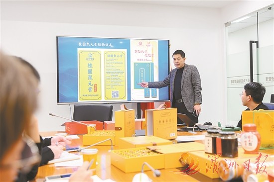 莆商林瑞棋介绍研发的新产品“桂圆聚元膏”。