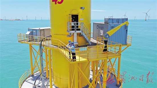 图为运维人员对海上风机进行日常检修。 全媒体记者 杨怡玲 摄