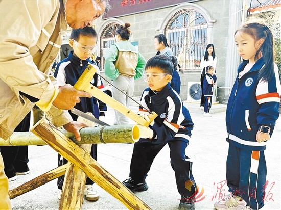 仙游县游洋镇河星村毛竹资源丰富,当地将竹林基地与乡村旅游、生态研学相结合,吸引游客参与竹海畅行、制作竹筒饭等体验活动,打造乡村旅游新业态。图为近日,一群学生在当地竹林基地锯竹筒,准备制作竹筒饭。全媒体记者 林英 摄