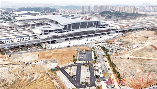 图为莆田火车站西广场,二层落客平台建成投用。 全媒体记者 林罗晓 摄