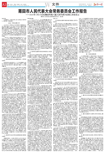 我受莆田市人大常委会委托,向大会报告工作,请予审议,并请列席人员提出意见。