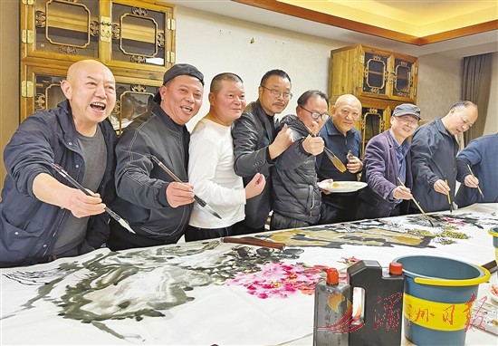 2月2日,由荔城区委宣传部主办,市国匠美术馆、镇海街道党工委、镇海街道商会等承办的“齐乐龙龙·福往福来——莆籍书画名家迎春邀请展”在市国匠美术馆展出。27位莆籍书画名家近百幅精品参展。图为书画家在现场创作《群芳争艳》作品。全媒体记者 许志挺 摄