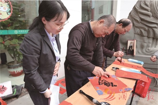 迎新春佳节,树新风正气。2月1日,农行莆田仙游县支行纪委联合工会举办“党建‘廉’建迎新春,翰墨飘香送‘农’福”活动,邀请多位书法家、书法爱好者在支行营业网点义写春联(如图)。